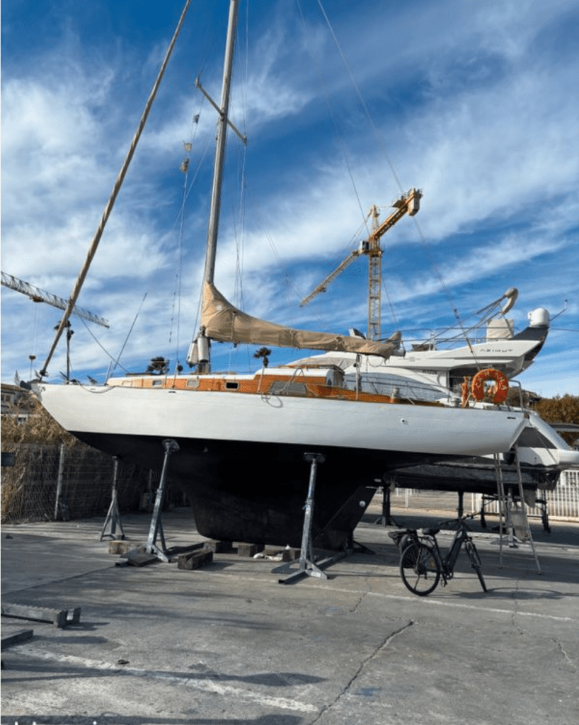 – Gréement en bon état, mais prévoir remplacement des haubans et filières inox qui ont plus de 10 ans. Pas d’info sur les voiles.